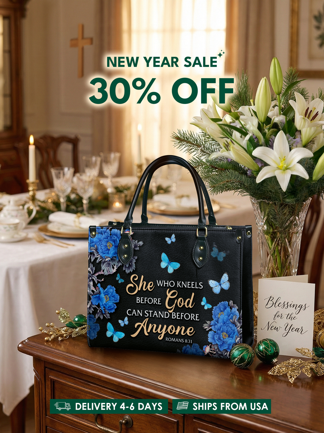 "Anchor" - Romans 8:31 Leather Tote Bag