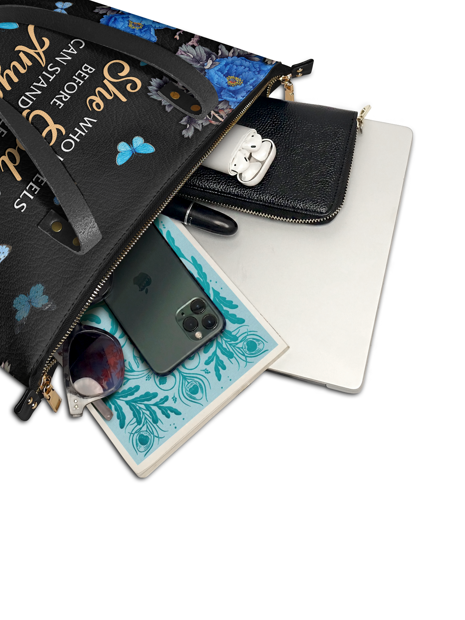 "Anchor" - Romans 8:31 Leather Tote Bag