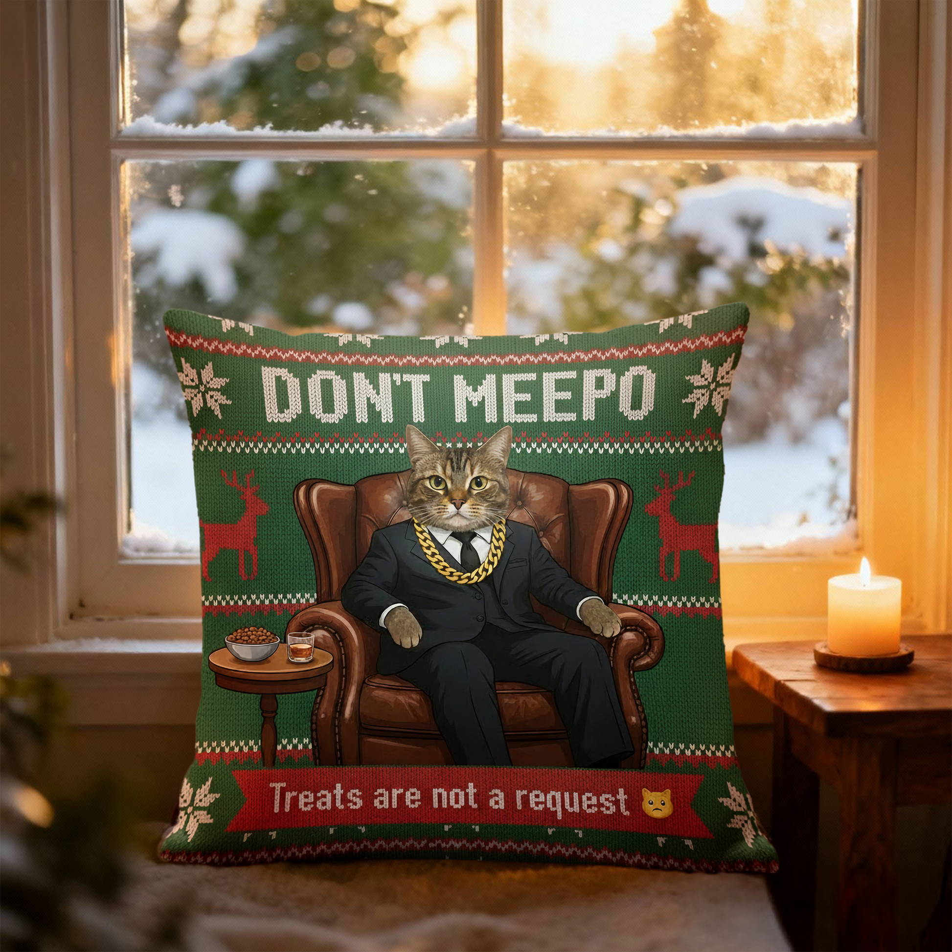 Now imagine that royal attitude, captured perfectly in your own Custom Cat Mafia Pillow – “Don’t Meepo” Edition.